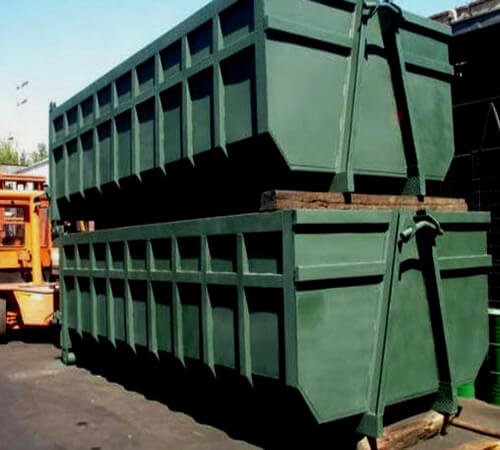 Contenedores metálicos plegados a camiones de carga, generalmente para transportar residuos de construcción.